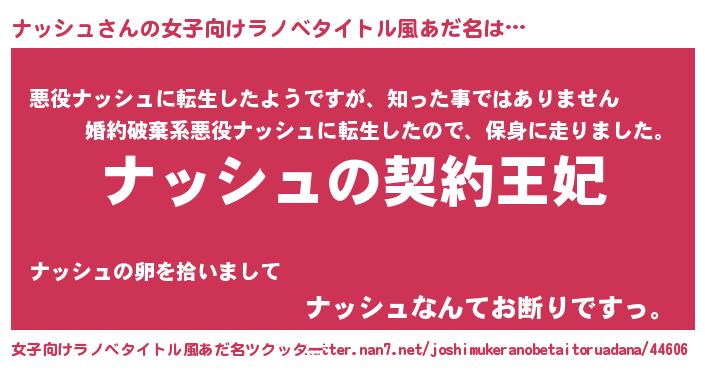 | 意味不明あだ名 | 『永久保存ナッシュ』『自称ナッシュ』 |