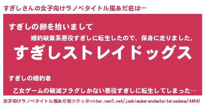 | ヒーロー風カッコイイあだ名 | 『究極戦士スギシ』『暗黒騎士スギ』 |