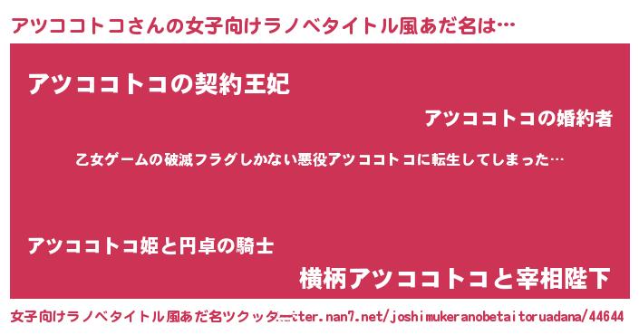 | 胡散臭い通販商品みたいなあだ名 | 『世界中を虜にした世界で10本だけ現存している希少なブランデー…その名も「アツココトコ」』 |