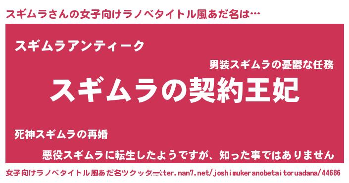 | 胡散臭い通販商品みたいなあだ名 | 『来世でも幸せになれる水素水…その名も「スギムラ」』 |