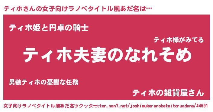 | 男性向けラノベタイトル風あだ名 | 『おまえをオタクにしてやるから、俺をティホにしてくれ! 』 |