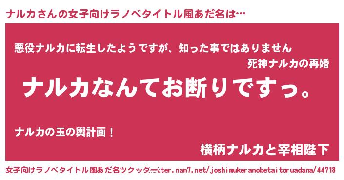 | 男性向けラノベタイトル風あだ名 | 『魔法科高校のナルカ』 |
