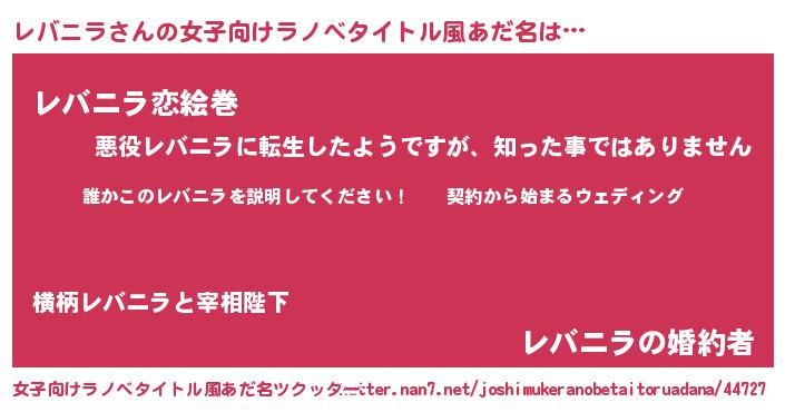 | 男性向けラノベタイトル風あだ名 | 『レバニラアートオンライン』 |