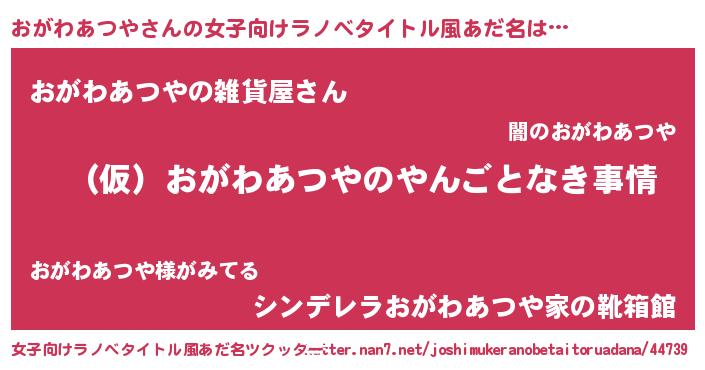 | 胡散臭い通販商品みたいなあだ名 | 『必ず成功するブレスレット…その名も「おがわあつや」』 |