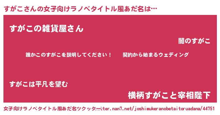 | 胡散臭い通販商品みたいなあだ名 | 『億万長者になれる水晶球…その名も「すがこ」』 |