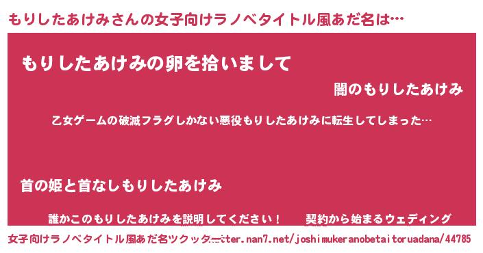 | 男性向けラノベタイトル風あだ名 | 『この素晴らしい世界にもりしたあけみを!』 |