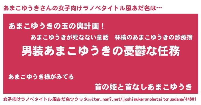 | 男性向けラノベタイトル風あだ名 | 『うちのあまこゆうきが世界を掌握している!』 |