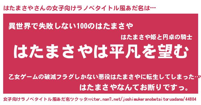 | ヘコむあだ名 | 『はた太郎』『はたまさや(遠い目)』 |