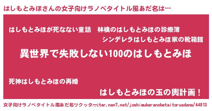| 男性向けラノベタイトル風あだ名 | 『はしもとみほという概念が存在しない退屈な世界 』 |