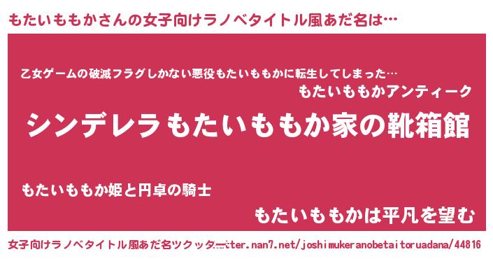 | 男性向けラノベタイトル風あだ名 | 『緋弾のモタイモモカ』 |