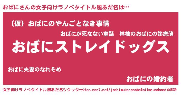 | 意味不明あだ名 | 『自称おばに』『ペロリンおばに』 |