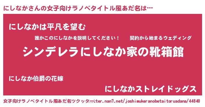 | 意味不明あだ名 | 『とにかく怪しいにしなか』 |