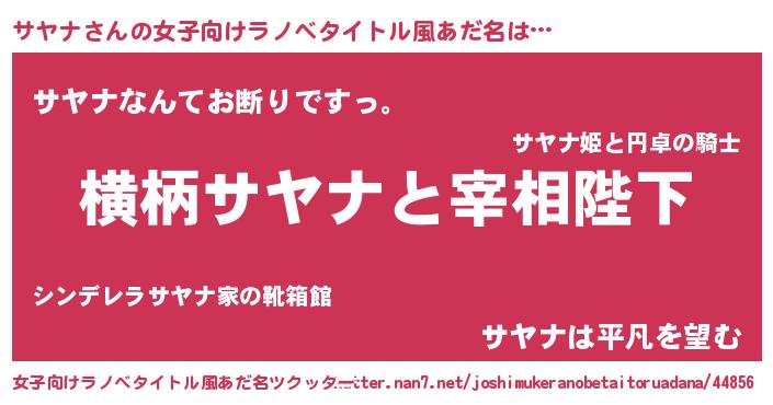 | 意味不明あだ名 | 『自称サヤナ』『とにかく怪しいサヤナ』 |