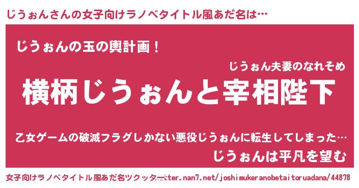 | 男性向けラノベタイトル風あだ名 | 『じうぉんに滅ぼされるだけの簡単なお仕事です』 |
