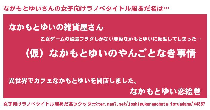 | 男性向けラノベタイトル風あだ名 | 『なかもとゆいの憂鬱』 |