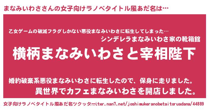 | 意味不明あだ名 | 『住所不定無職まなみいわさ(53歳)』 |