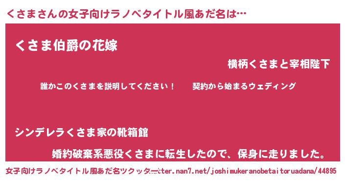 | 胡散臭い通販商品みたいなあだ名 | 『億万長者になれるブレスレット…その名も「くさま」』 |