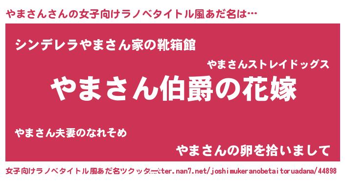| 男性向けラノベタイトル風あだ名 | 『うちの娘の為ならば、俺はもしかしたらやまさんも倒せるかもしれない。』 |