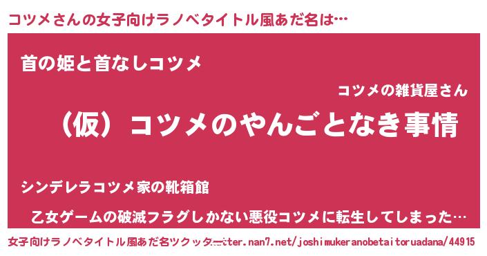 | 胡散臭い通販商品みたいなあだ名 | 『必ず成功するブレスレット…その名も「コツメ」』 |