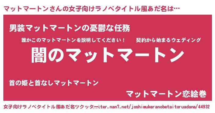 | 男性向けラノベタイトル風あだ名 | 『Re:マットマートンから始める異世界生活』 |