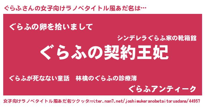 | 胡散臭い通販商品みたいなあだ名 | 『来世でも幸せになれる健康食品…その名も「ぐらふ」』 |
