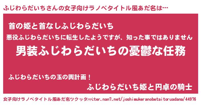 | 男性向けラノベタイトル風あだ名 | 『うちのふじわらだいちが世界を掌握している!』 |