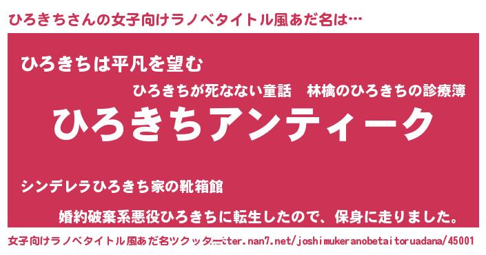 | 男性向けラノベタイトル風あだ名 | 『魔法科高校のひろきち』 |