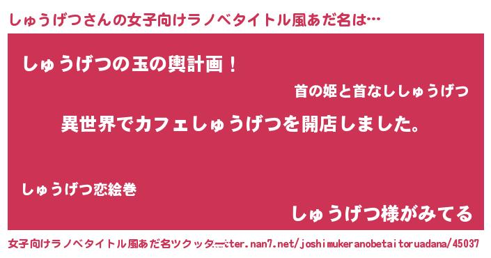 | 意味不明あだ名 | 『永久保存しゅうげつ』 |
