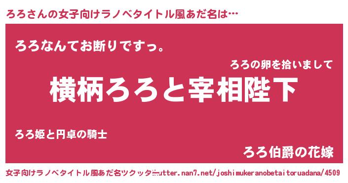 | ヒーロー風カッコイイあだ名 | 『究極戦士ロロ』『ウルトラろろマン』 |