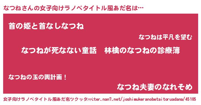 | 男性向けラノベタイトル風あだ名 | 『魔弾の王となつね』 |