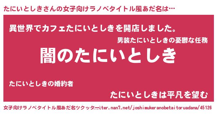 | 男性向けラノベタイトル風あだ名 | 『Re:たにいとしきから始める異世界生活』 |