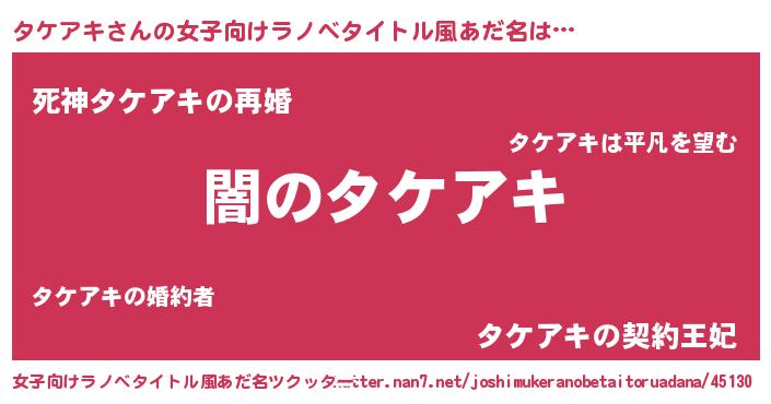 | 意味不明あだ名 | 『自称タケアキ』『永久保存タケアキ』 |