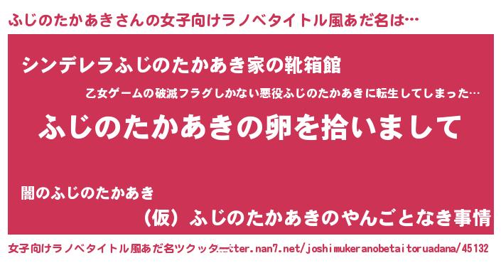 | 男性向けラノベタイトル風あだ名 | 『ダンジョンにふじのたかあきを求めるのは間違っているだろうか』 |