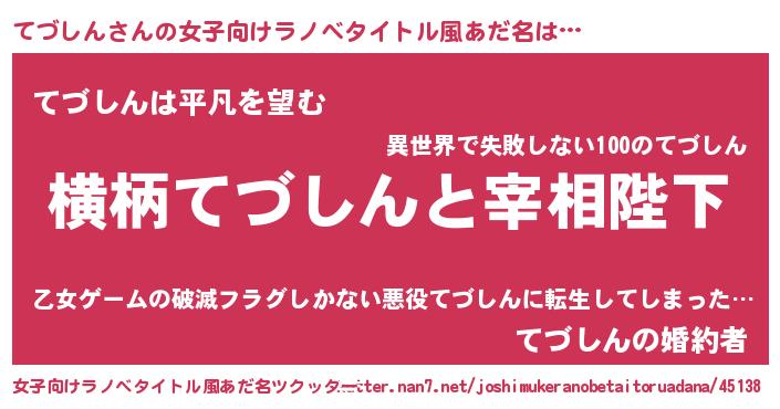 | 男性向けラノベタイトル風あだ名 | 『てづしんに滅ぼされるだけの簡単なお仕事です』 |