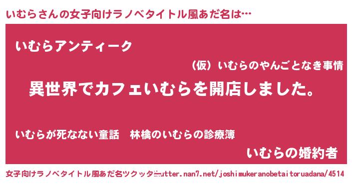 | 男性向けラノベタイトル風あだ名 | 『誰もが恐れるあのいむらが、ぼくの専属メイドになるようです。』 |