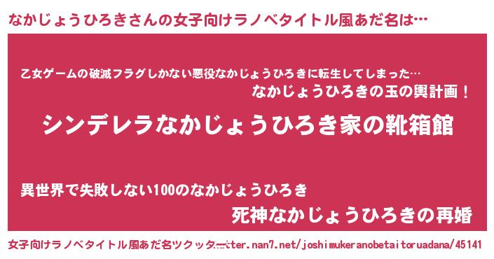 | 男性向けラノベタイトル風あだ名 | 『緋弾のナカジョウヒロキ』 |