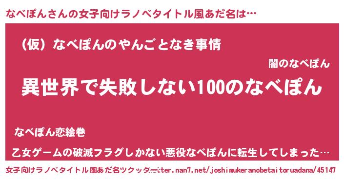 | ヘコむあだ名 | 『なべぽん(小並感)』『なべにゅー』 |