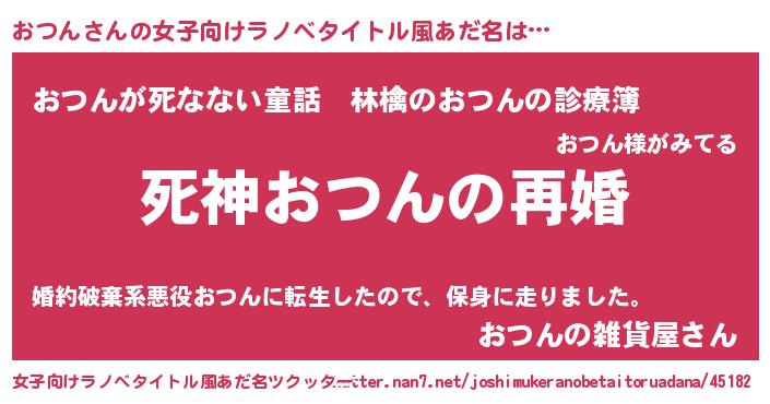 | 男性向けラノベタイトル風あだ名 | 『ノーゲーム・ノーオツン』 |
