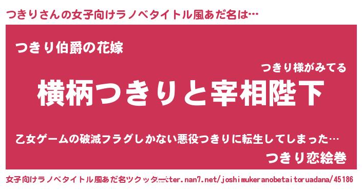 | 男性向けラノベタイトル風あだ名 | 『つきりに滅ぼされるだけの簡単なお仕事です』 |