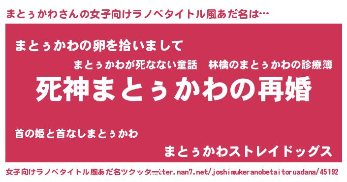 | 男性向けラノベタイトル風あだ名 | 『ノーゲーム・ノーマトゥカワ』 |
