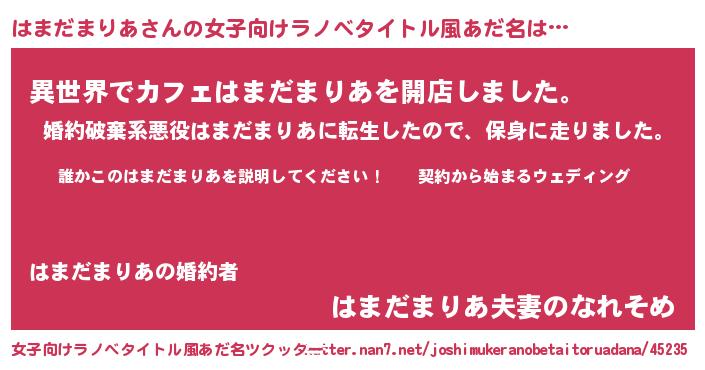 | 男性向けラノベタイトル風あだ名 | 『ハマダマリアアートオンライン』 |