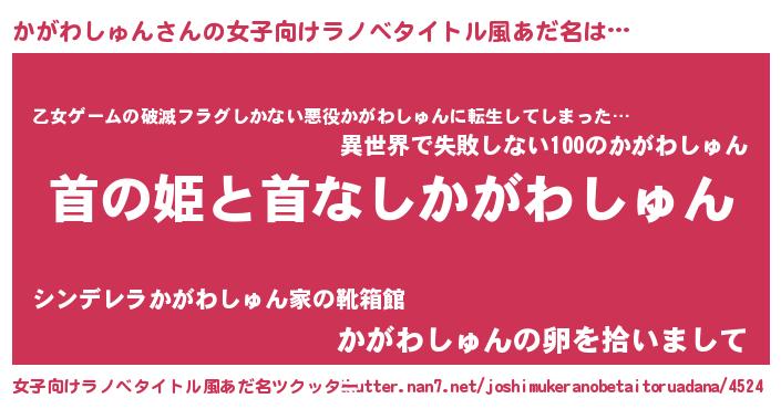 | 意味不明あだ名 | 『住所不定無職かがわしゅん(77歳)』 |