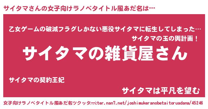 | 胡散臭い通販商品みたいなあだ名 | 『幸せが訪れる高級そうな絵画…その名も「サイタマ」』 |