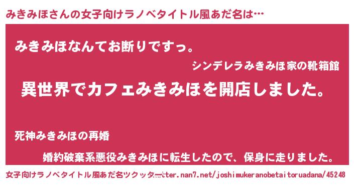 | 男性向けラノベタイトル風あだ名 | 『誰もが恐れるあのみきみほが、ぼくの専属メイドになるようです。』 |