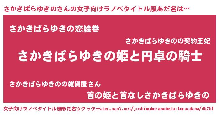 | 胡散臭い通販商品みたいなあだ名 | 『モテモテ間違いなしブレスレット…その名も「さかきばらゆきの」』 |