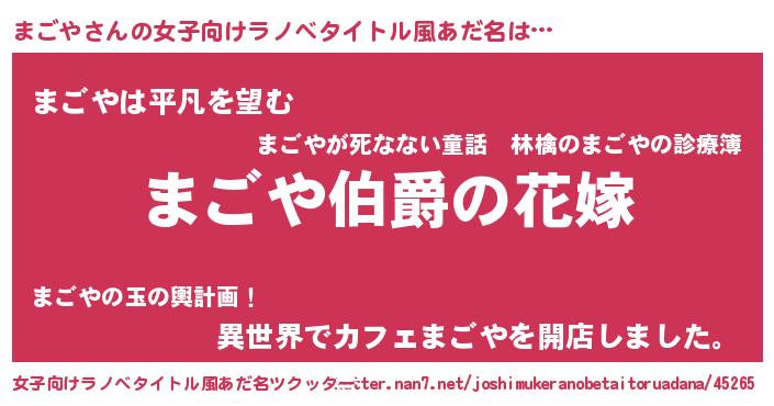 | 男性向けラノベタイトル風あだ名 | 『うちの娘の為ならば、俺はもしかしたらまごやも倒せるかもしれない。』 |