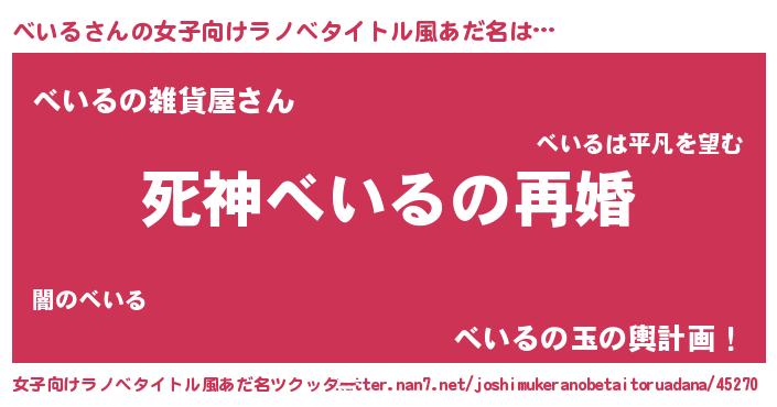| 意味不明あだ名 | 『眠気覚ましガムべいる味』『自称べいる』 |