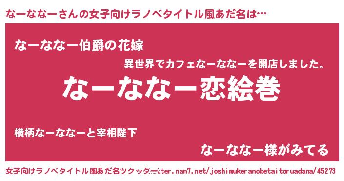 | ヒーロー風カッコイイあだ名 | 『愛の使者なーななー』『炎刃騎士ナー』 |