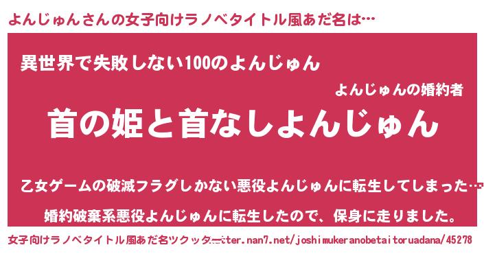 | 男性向けラノベタイトル風あだ名 | 『はたらくよんじゅんさま!』 |