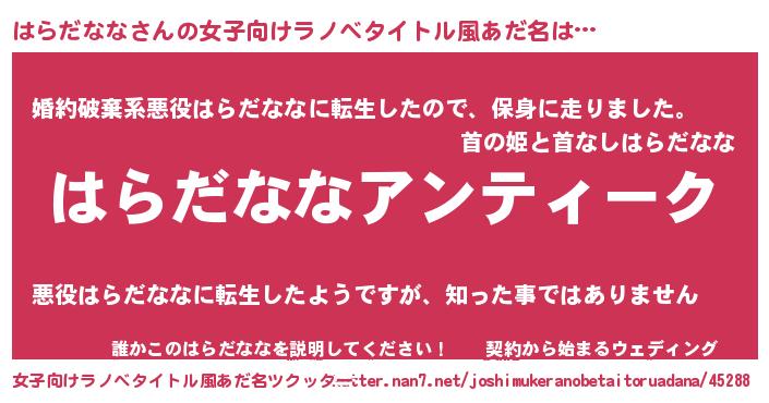 | 意味不明あだ名 | 『自称はらだなな』『ペロリンはらだなな』 |
